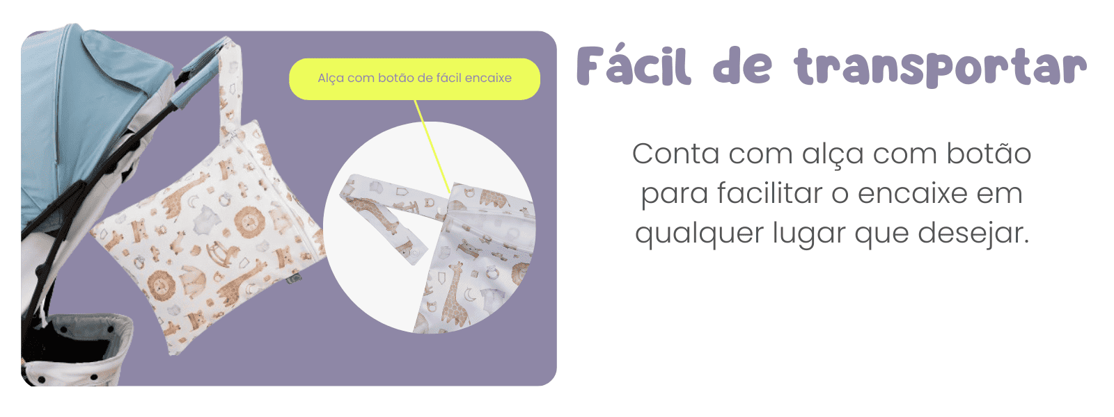 Fácil de transportar Conta com alça com botão para facilitar o encaixe em qualquer lugar que desejar. Alça com botão de fácil encaixe