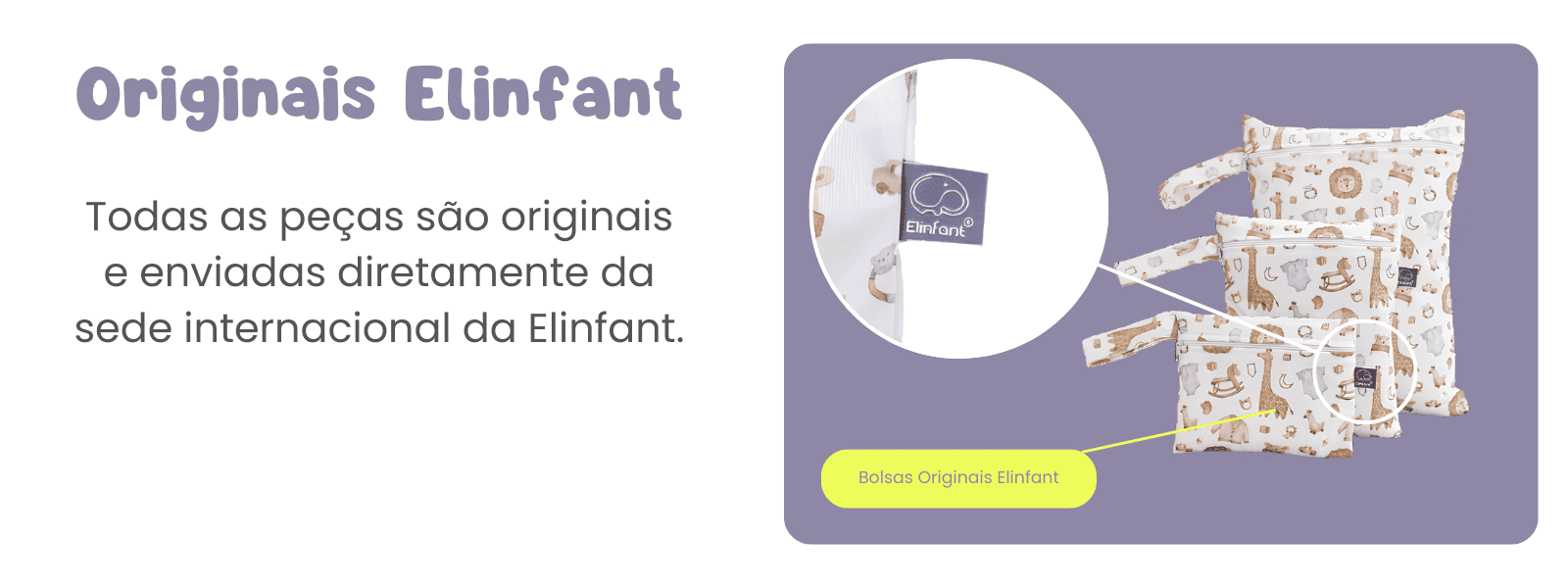 Originais Elinfant Todas as peças são originais e enviadas diretamente da sede internacional da Elinfant. Bolsas Originais Elinfant