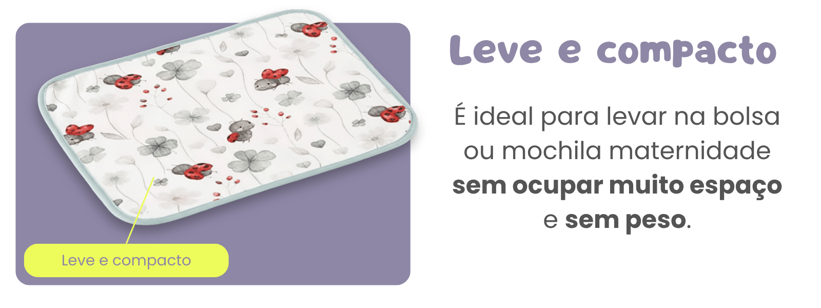 Leve e Compacto (30cm x 40cm): É ideal para levar na bolsa ou mochila maternidade sem ocupar muito espaço e sem peso. Perfeito para uso em casa, passeios, viagens ou visitas a amigos e familiares.