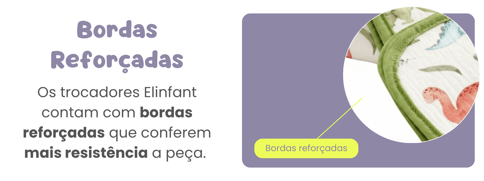 Bordas Reforçadas: Os trocadores Elinfant contam com bordas reforçadas que conferem mais resistência e durabilidade à peça, garantindo que o produto suporte o uso contínuo e as lavagens sem desgastar.